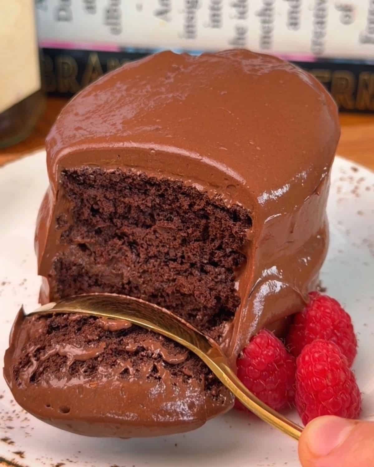 90-Second High Protein Frosted Fudgy Chocolate Cake
