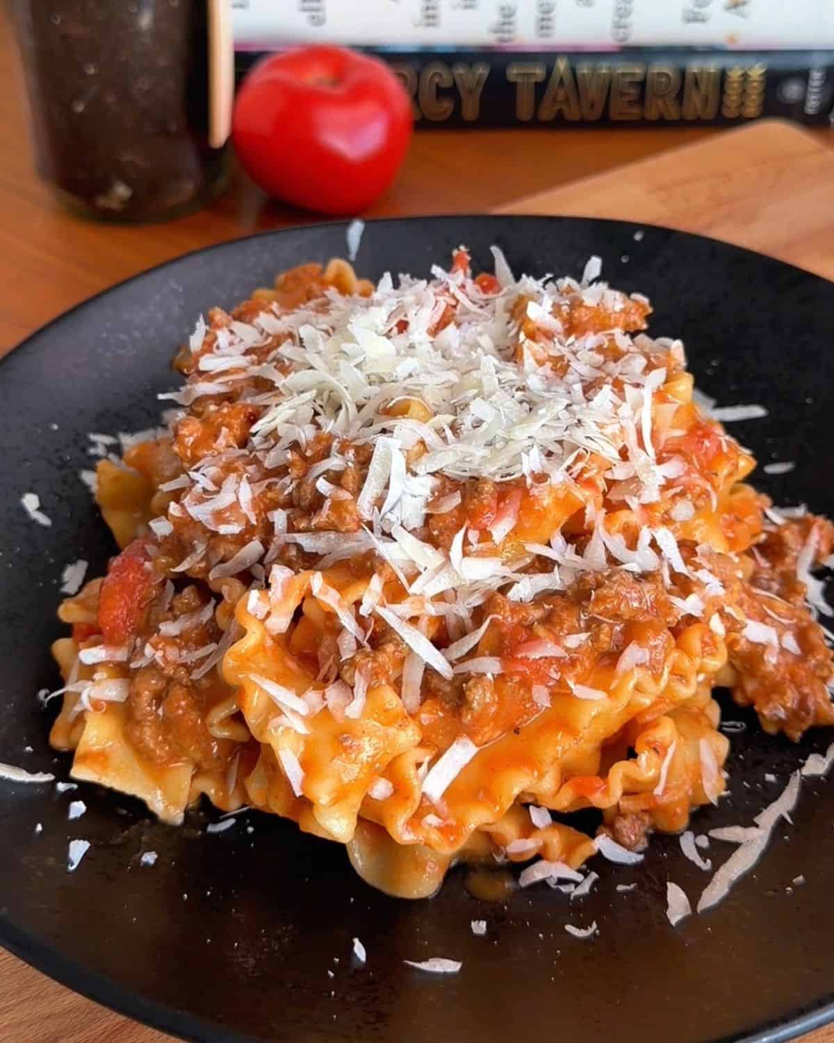 The milk softens the acidity while the parmesan adds body and richness, giving you a creamy texture without needing heavy cream. Combined with the browned ground beef, the result is a sauce that feels full and satisfying without being too heavy.